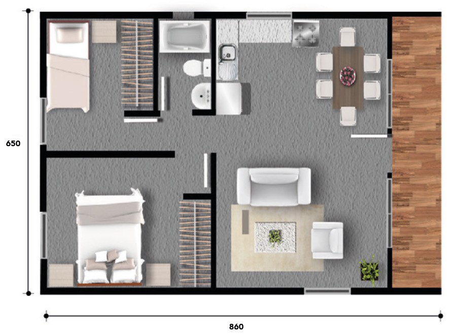 2 DORMITORIOS – 2 BAÑOS