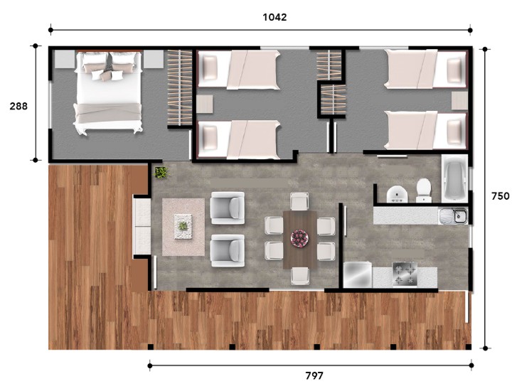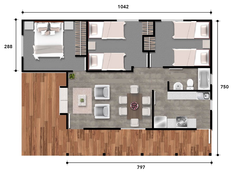 Terraza cubierta: 12m2