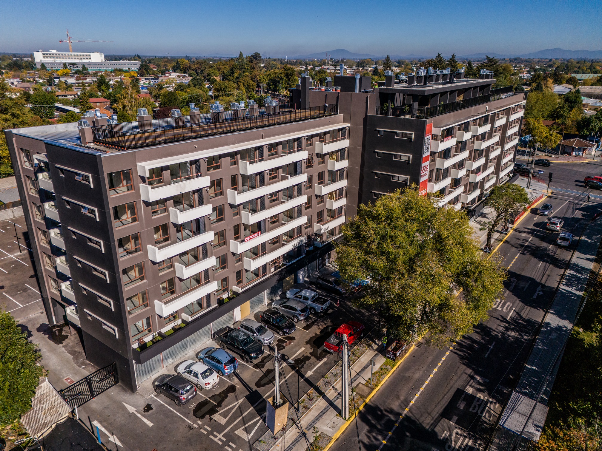 El edificio está emplazado a pocas cuadras del nuevo Hospital de Chillán, Avenida O’Higgins esquina Avenida Collín. Cuenta con dos ascensores de última generación, seguridad 24/7, tres quinchos panorámicos, piscina panorámica, sala multiuso, lavandería y gimnasio equipado. Excelente conectividad y vías de acceso, gran variedad y oferta de servicios urbanos.