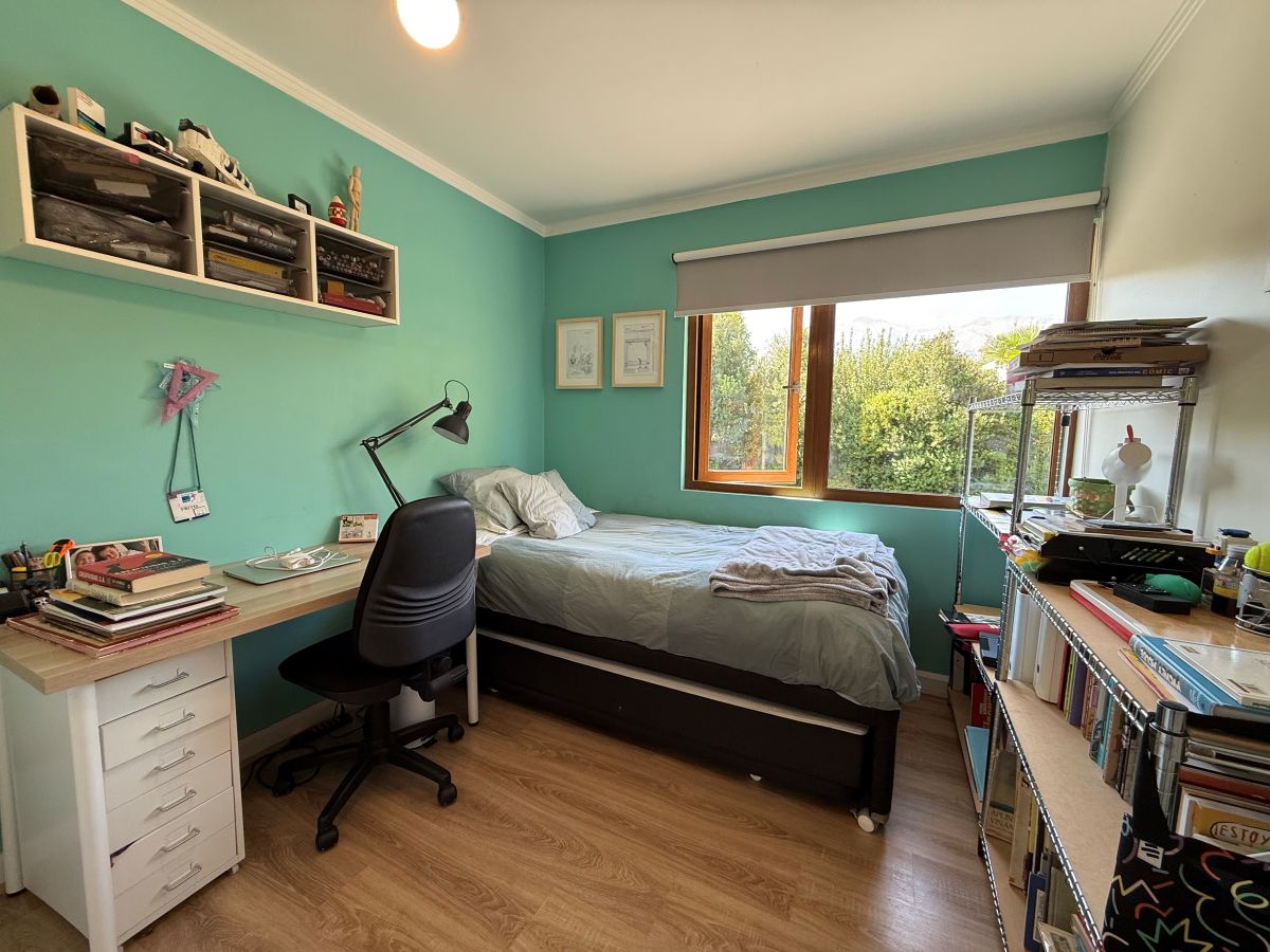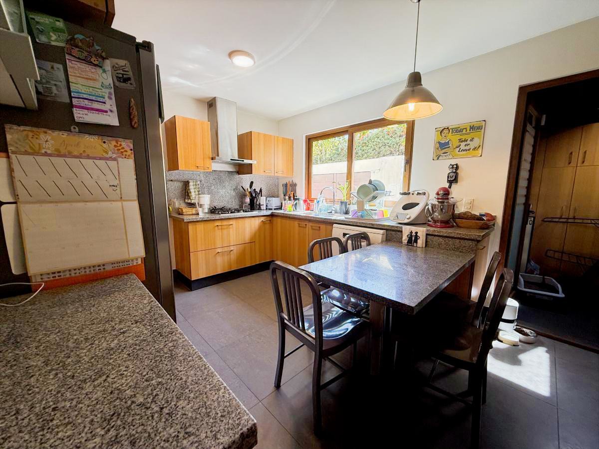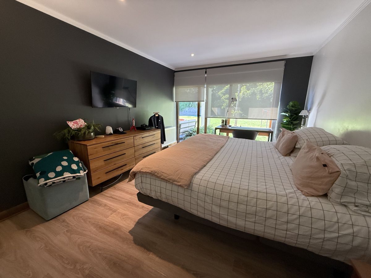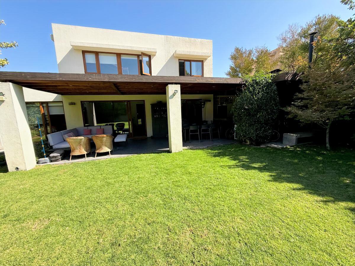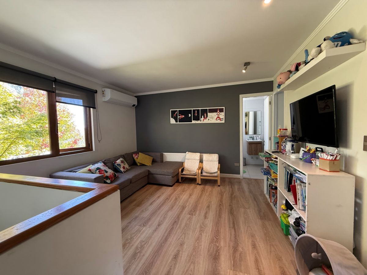 Espectacular casa familiar de dos pisos ubicada en condominio sector Piedra Roja y cercana al Colegio Alemán. De 5 dormitorios, principal en suite con walking closet y home office incorporado, 4 baños adicionales, incluyendo servicios y baño de visita, cocina totalmente equipada, sala de estar en segundo piso, gran terraza techada, amplio jardín con quincho equipado y piscina temperada, logia con almacenamiento, bodega y estacionamiento para dos automóviles. Cuenta además con sistema de calefacción vía radiadores y ventanas termopanel en toda la casa.
