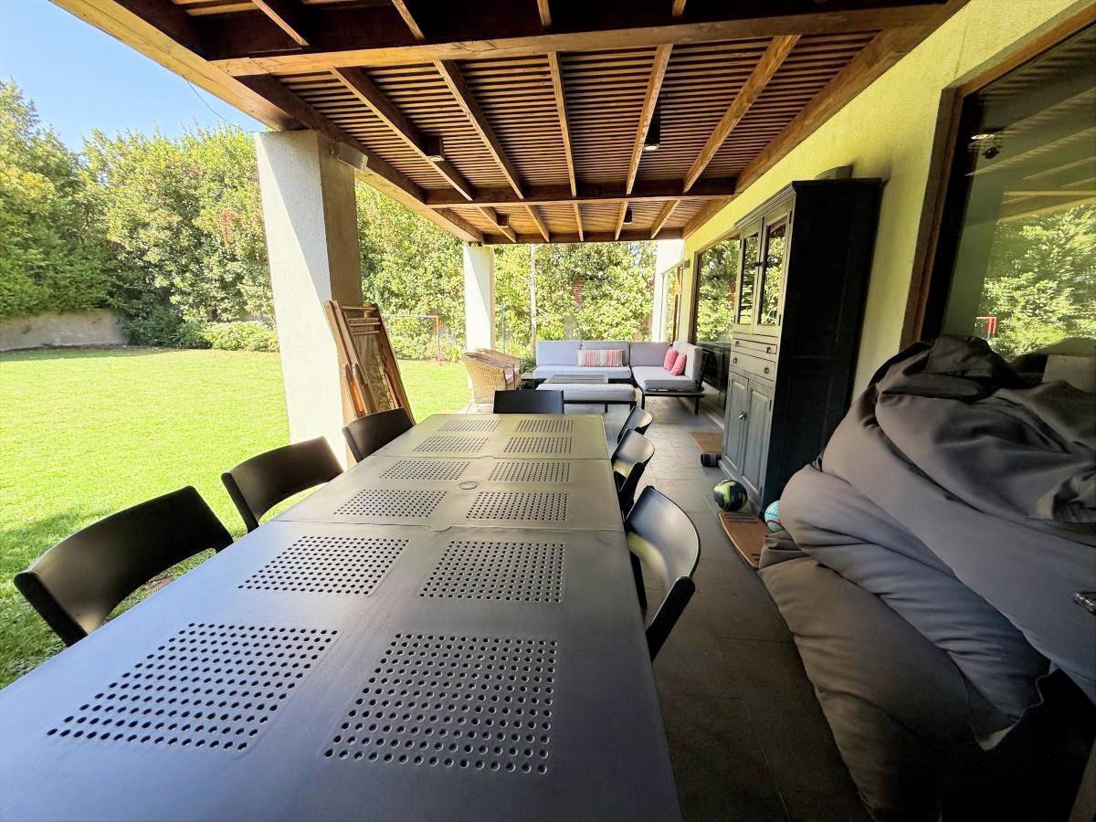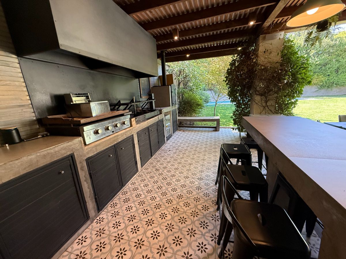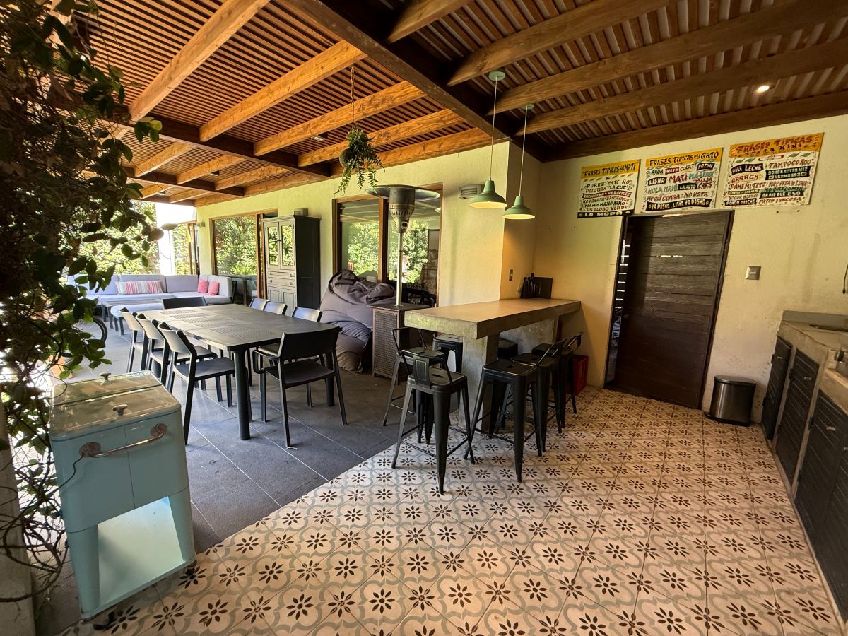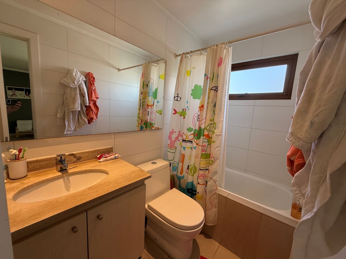 Espectacular casa familiar de dos pisos ubicada en condominio sector Piedra Roja y cercana al Colegio Alemán. De 5 dormitorios, principal en suite con walking closet y home office incorporado, 4 baños adicionales, incluyendo servicios y baño de visita, cocina totalmente equipada, sala de estar en segundo piso, gran terraza techada, amplio jardín con quincho equipado y piscina temperada, logia con almacenamiento, bodega y estacionamiento para dos automóviles. Cuenta además con sistema de calefacción vía radiadores y ventanas termopanel en toda la casa.