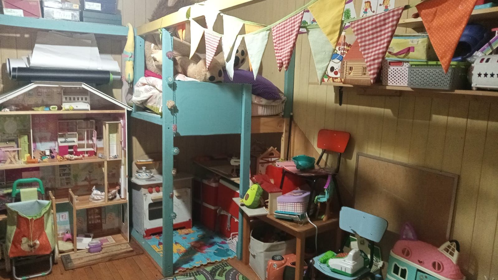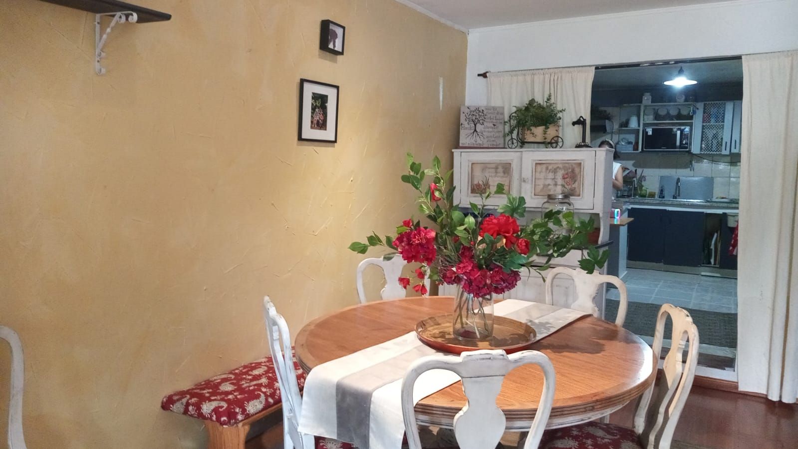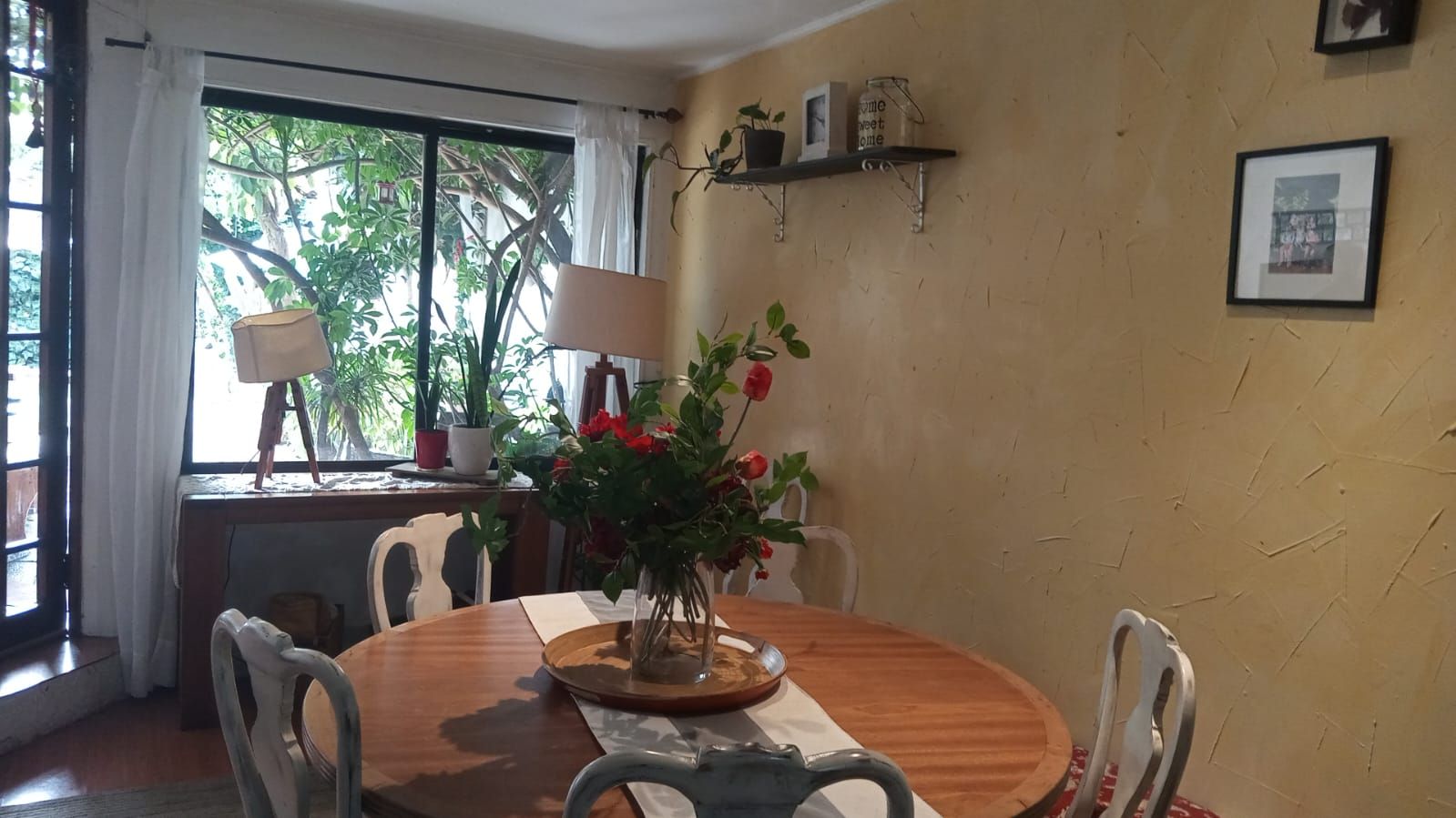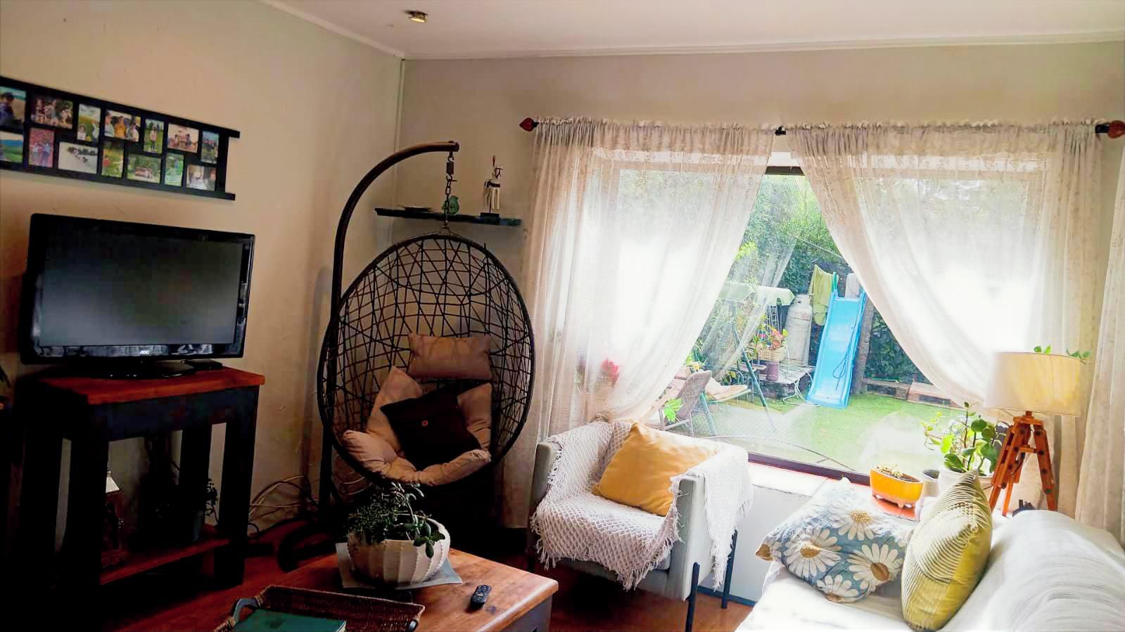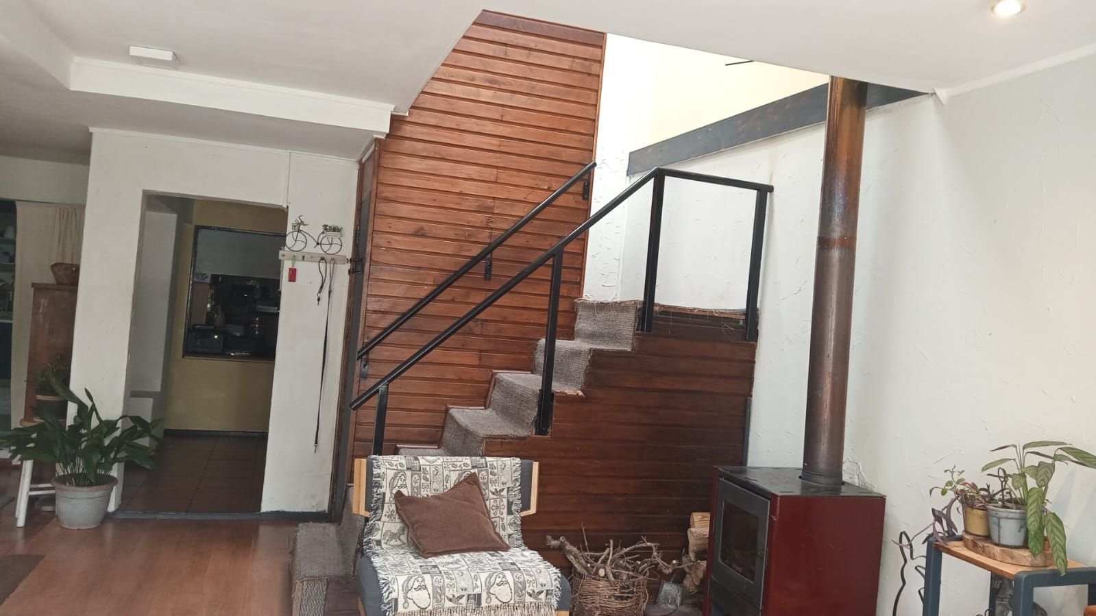 Acogedora e iluminada casa de dos pisos en amplio terreno.  En el primer nivel se encuentra living y comedor en ambientes separados, cocina cerrada, estufa Bosca de combustión lenta para ambos niveles, un baño más sala de estar actualmente habilitada.  En el segundo nivel hay 3 dormitorios y sala de estar.  En la entrada principal hay 4 bodegas y espacio para 4 vehículos.