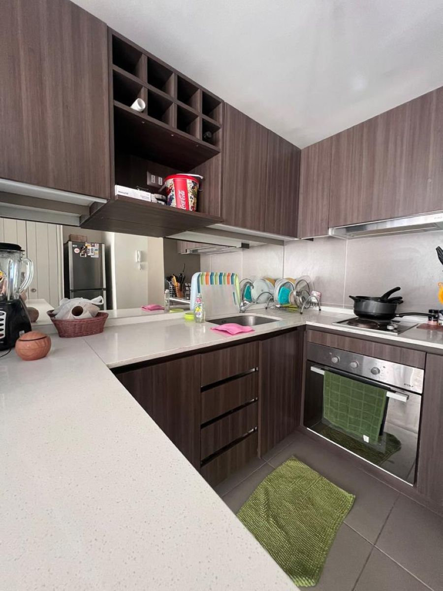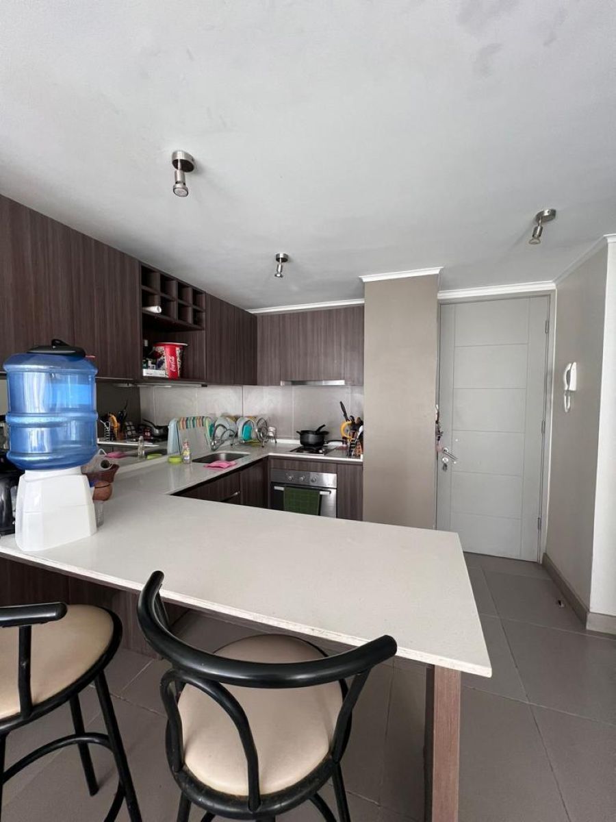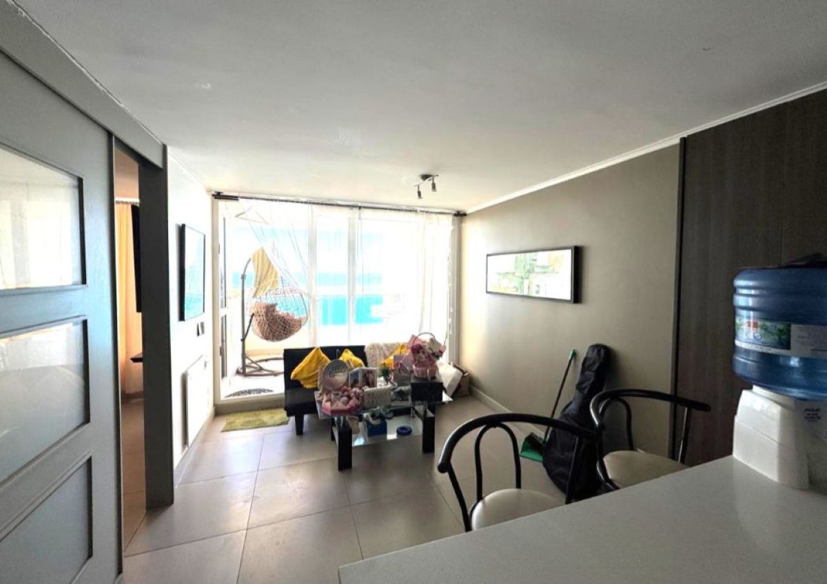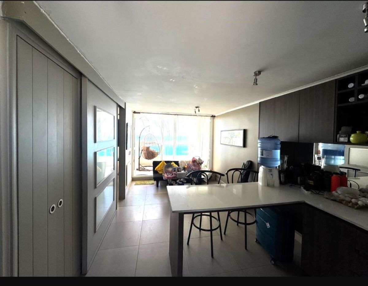 Luminoso y moderno departamento con sol de tarde ubicado en 4to piso. Consta de un dormitorio con walk-in closet, un baño, cocina integrada amoblada con cubierta de granito, encimera, horno y campana eléctrica, espacioso living y comedor con acceso a terraza privada con baranda de cristal que permite una espectacular vista panorámica a la laguna y al mar. Con pisos de porcelanato y ventanas de PVC, estacionamiento y bodega. El edificio cuenta con seguridad 24/7, accesos controlados y estacionamiento de visitas, laguna cristalina navegable de 2.47 ha., acceso directo a playa de arenas claras, 3 piscinas temáticas: con bar en el interior, de niños y semiolímpica, canchas de tenis, juegos infantiles y zona de calistenia, sala multiuso, quinchos, cafetería y minimarket.