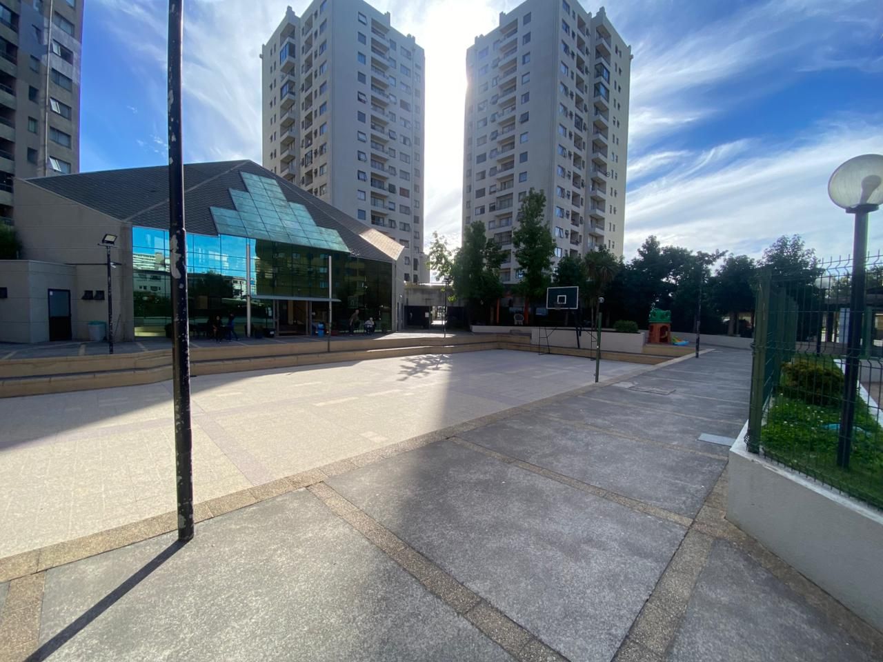 El edificio cuenta con agradables espacios comunes: • Piscina para los días de sol. • Quincho para reuniones con amigos. • Sala de eventos para celebrar momentos especiales. • Gimnasio para mantenerse en forma. • Multicancha para realizar diferentes actividades deportivas. • Sala de estudio para las jornadas académicas. Conserjería 24/7, bicicletero.