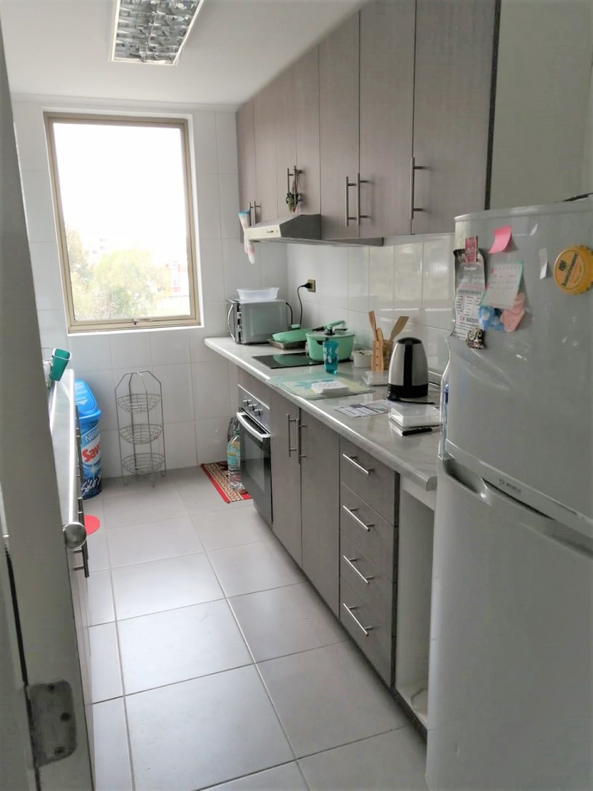 Acogedor departamento semi nuevo de tres dormitorios (uno en suite con walking closet) y dos baños, cómodo living comedor con salida a terraza, orientación oriente y muy iluminado, cocina moderna tradicional full equipada con muebles, horno, campana eléctrica y encimera, termoeléctrico (full eléctrico) y con ventanas de aluminio termopanel. Los dormitorios tienen piso flotante y closets, baños y cocina con cerámica en pisos y paredes. El edificio cuenta con conserjería, acceso controlado, cámaras de seguridad, excelente ubicación a 4 cuadras del mayor terminal de buses de la región y cercano a la Universidad del Bio Bío.