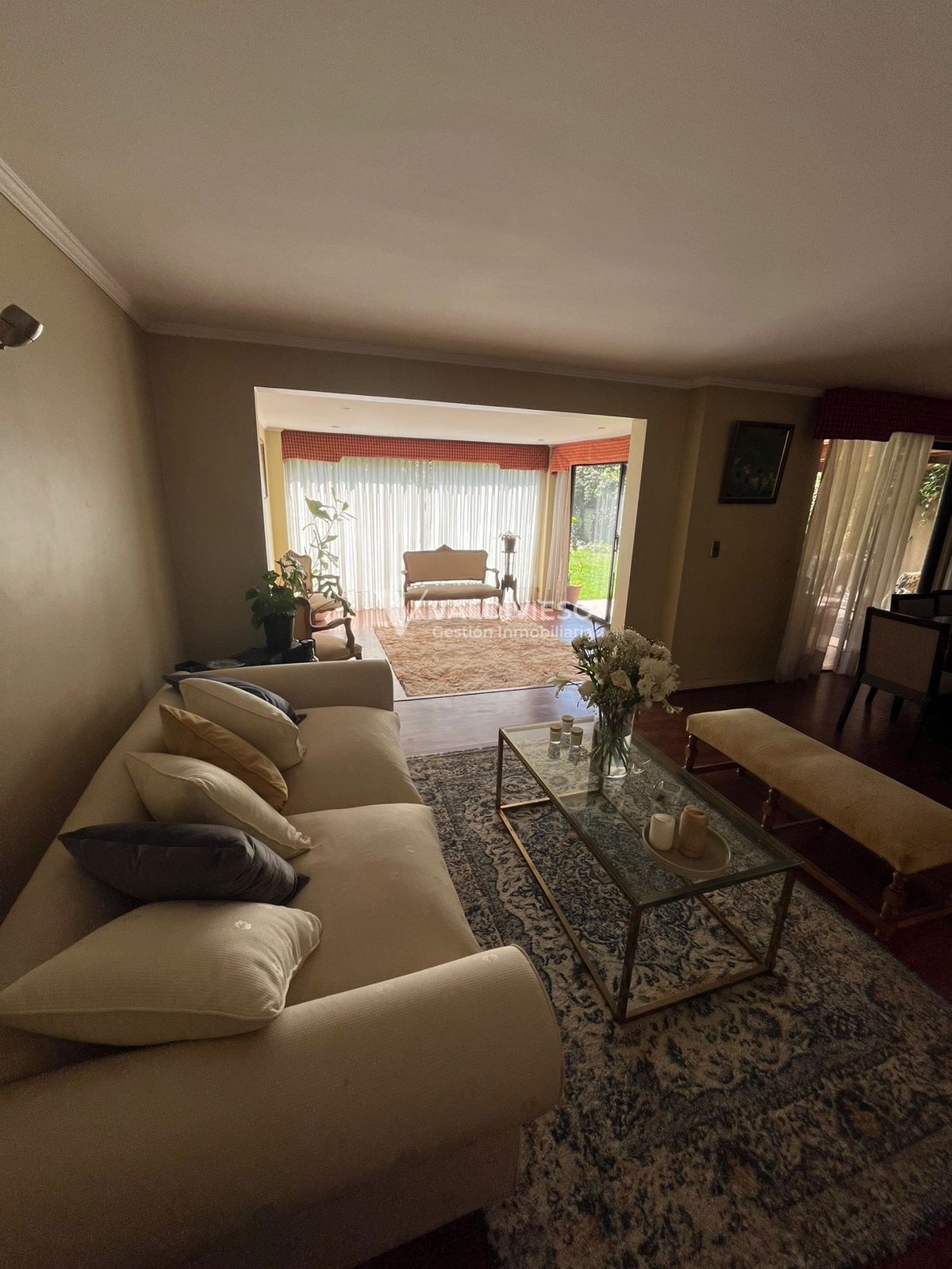 Primer piso: Gran living ampliado, comedor, cocina y gran logia, baño y pieza de servicio, escritorio y baño de visitas.