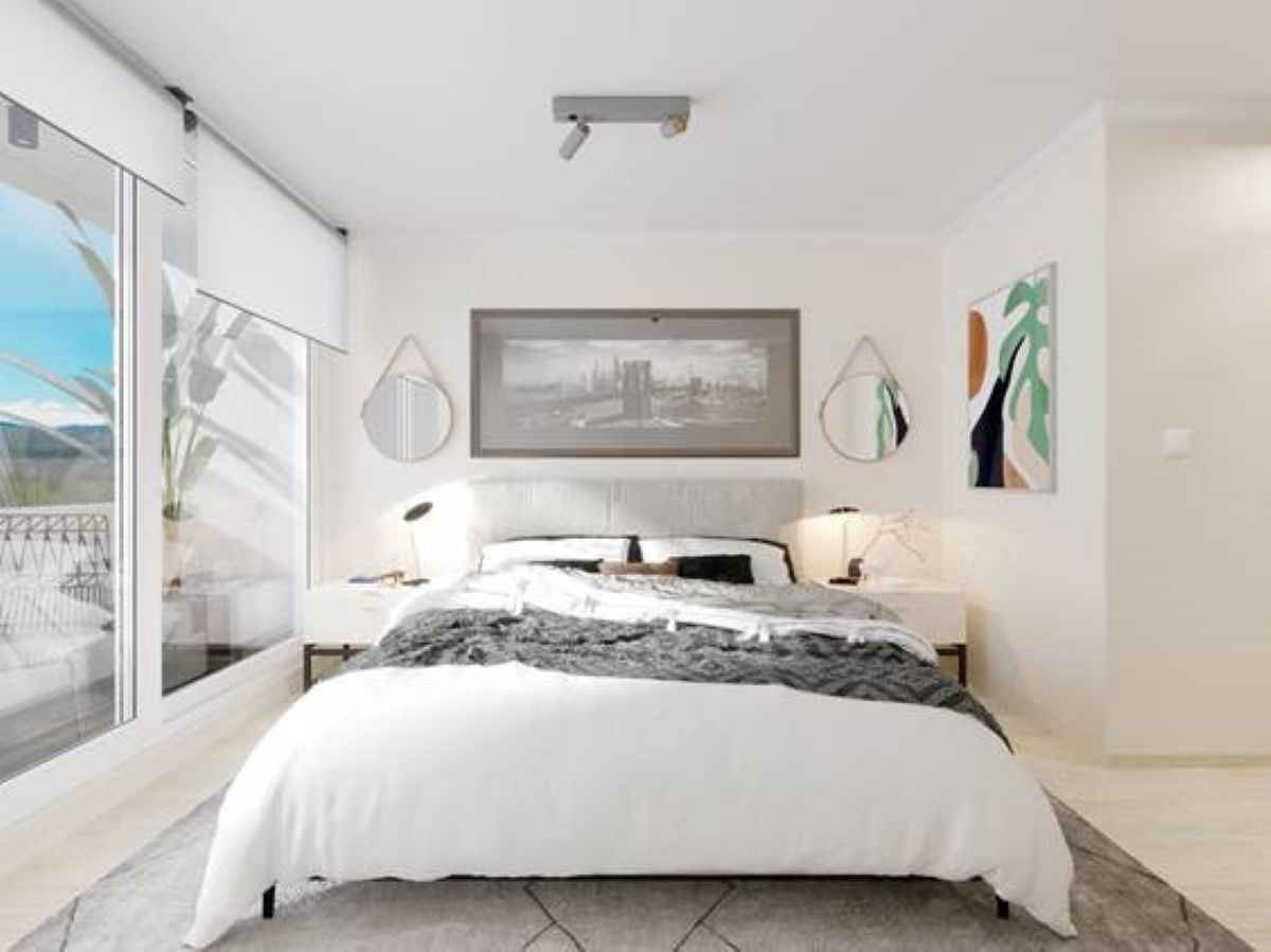 - Cocina con cubierta de cuarzo, cajoneras de cierre suave e iluminación LED.